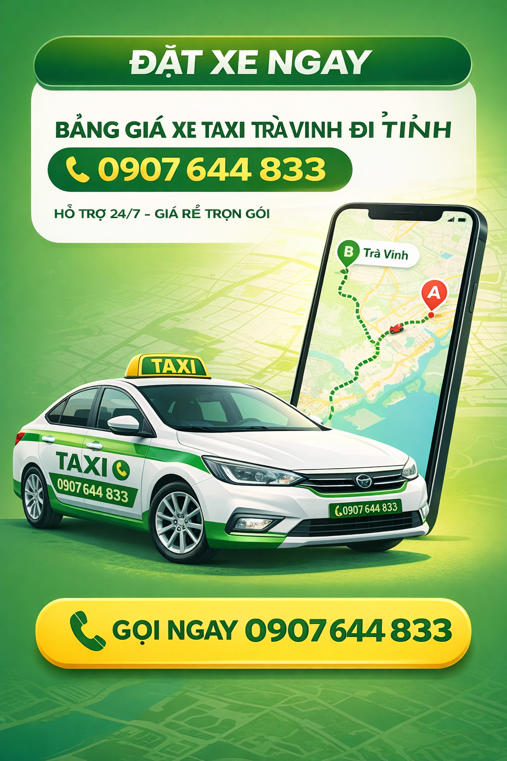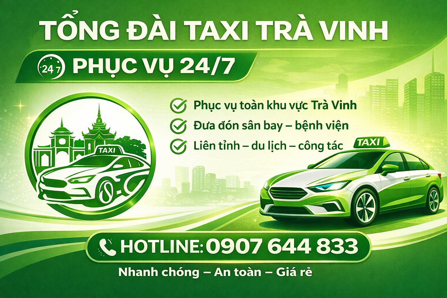 Taxi Trà Vinh là dịch vụ tổng đài đặt xe 24/7, chuyên phục vụ đưa đón khách trên toàn địa bàn Trà Vinh và các khu vực lân cận.